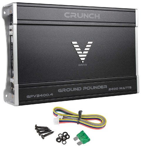 The new Ground Pounder GPV amplifier has everything needed in a reliable, performance-driven design from Crunch. The Ground Pounder amplifier looks great and is highlighted by a new heat sink, attractive end panels, and an illuminated scrolling "V" light. Experience the feeling of real power with GrCrunch GPV2400.4 Ground Pounder Four-Channel A/B Class Amplifier Do not Miss!! The new Ground Pounder GPV amplifier has everything needed in a reliable, performance-driven design from Crunch. The Ground Pounder amplifier looks great and is highlighted by a new heat sink, attractive end panels, and an illuminated scrolling "V" light. Experience the feeling of real power with Gr... Crunch GPV2400.4 Ground Pounder Four-Channel A/B Class Amplifier